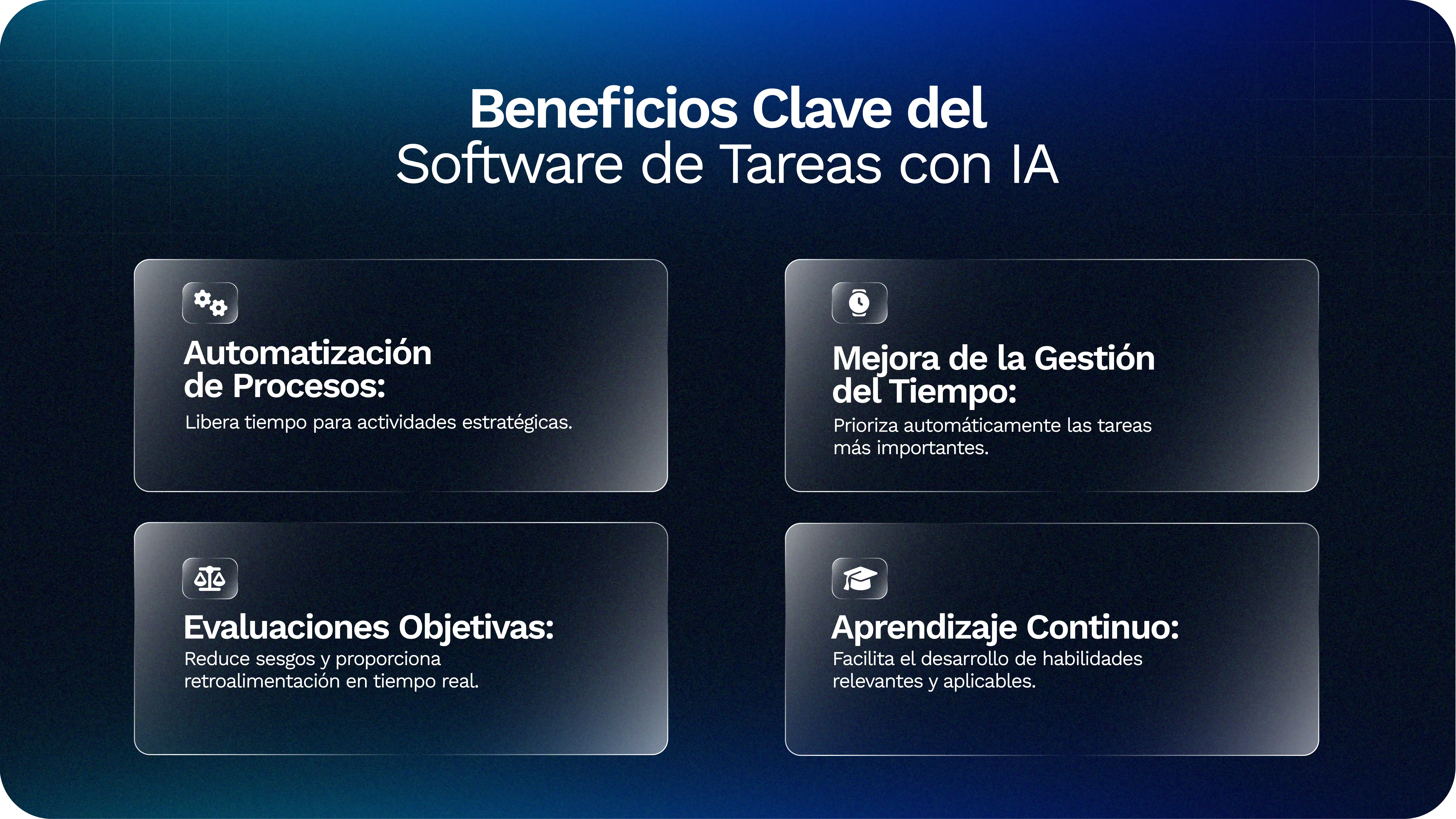 Uno de los mayores beneficios del software de tareas con IA es su capacidad para automatizar procesos repetitivos. Esto incluye desde la programación de reuniones hasta la gestión de correos electrónicos y recordatorios. Al eliminar estas tareas de la carga laboral diaria, los empleados pueden dedicar más tiempo a actividades estratégicas que realmente impactan en el negocio.