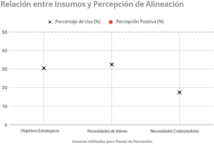 • Objetivos estratégicos (30,4 %).• Necesidades reportadas por los líderes (32,1 %).• Necesidades reportadas por cada colaborador (17,8 %).